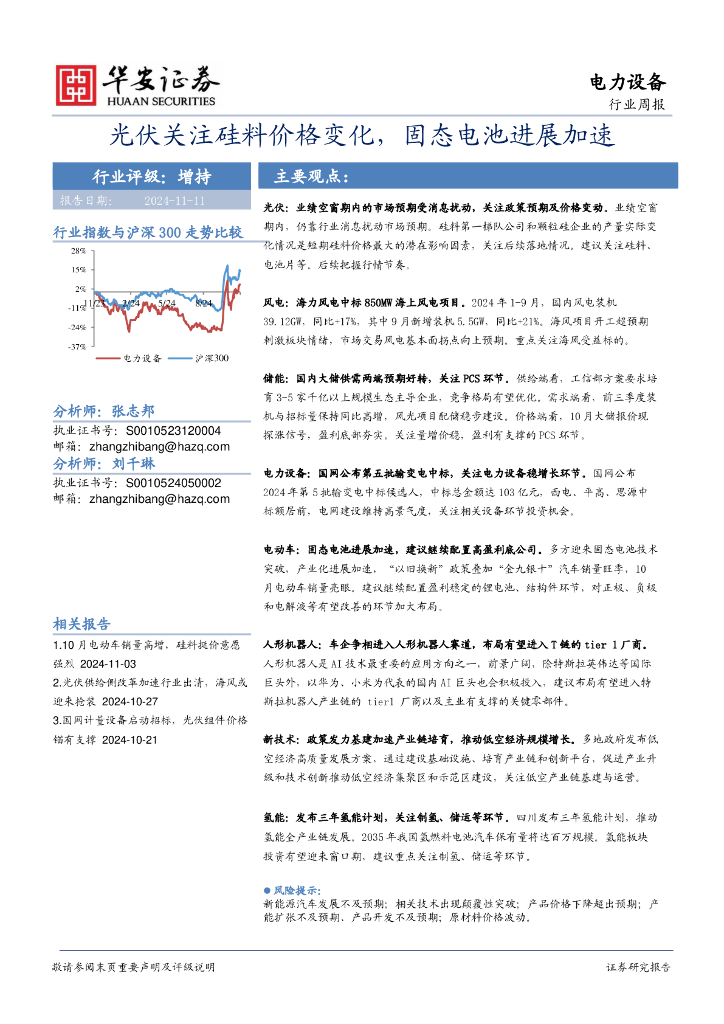 华安证券:电力设备行业周报:光伏关注硅料价格变化,固态电池进展加速.pdf