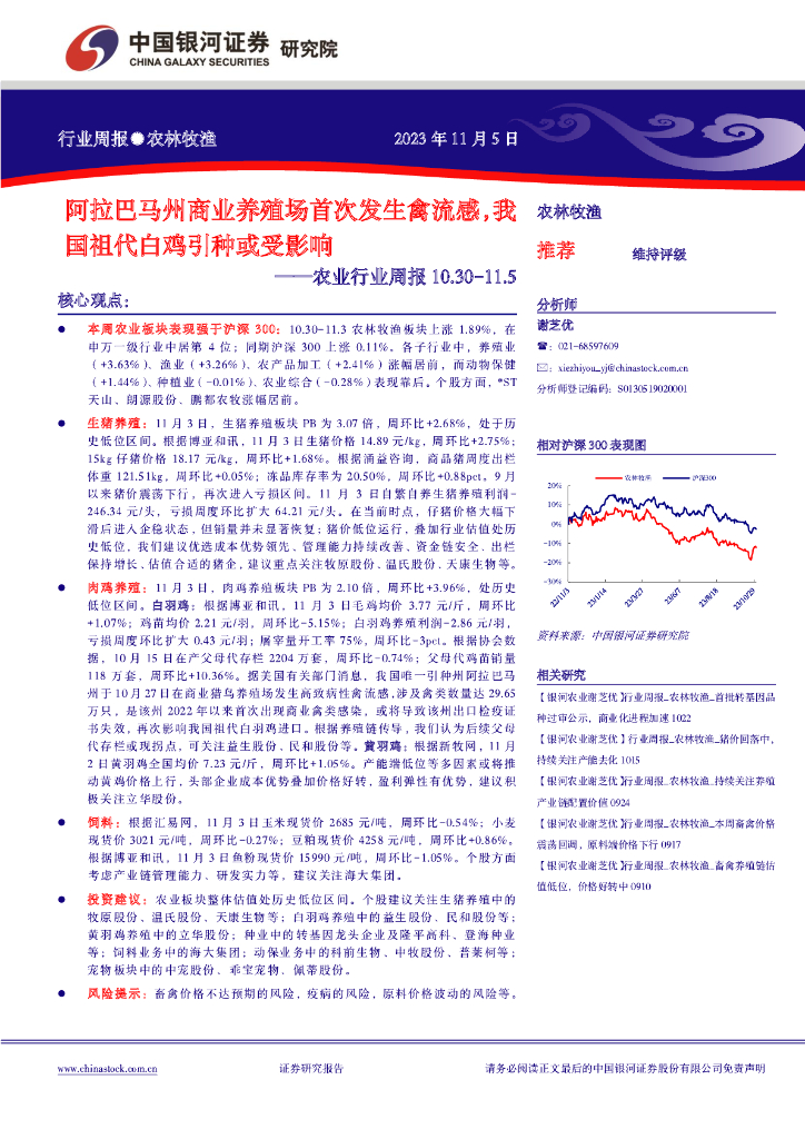 中国银河:农业行业周报:阿拉巴马州商业养殖场首次发生禽流感,我国祖代白鸡引种或受影响.pdf