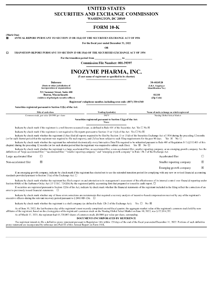 Inozyme Pharma(INZY)2022财年年度报告(英文版).pdf
