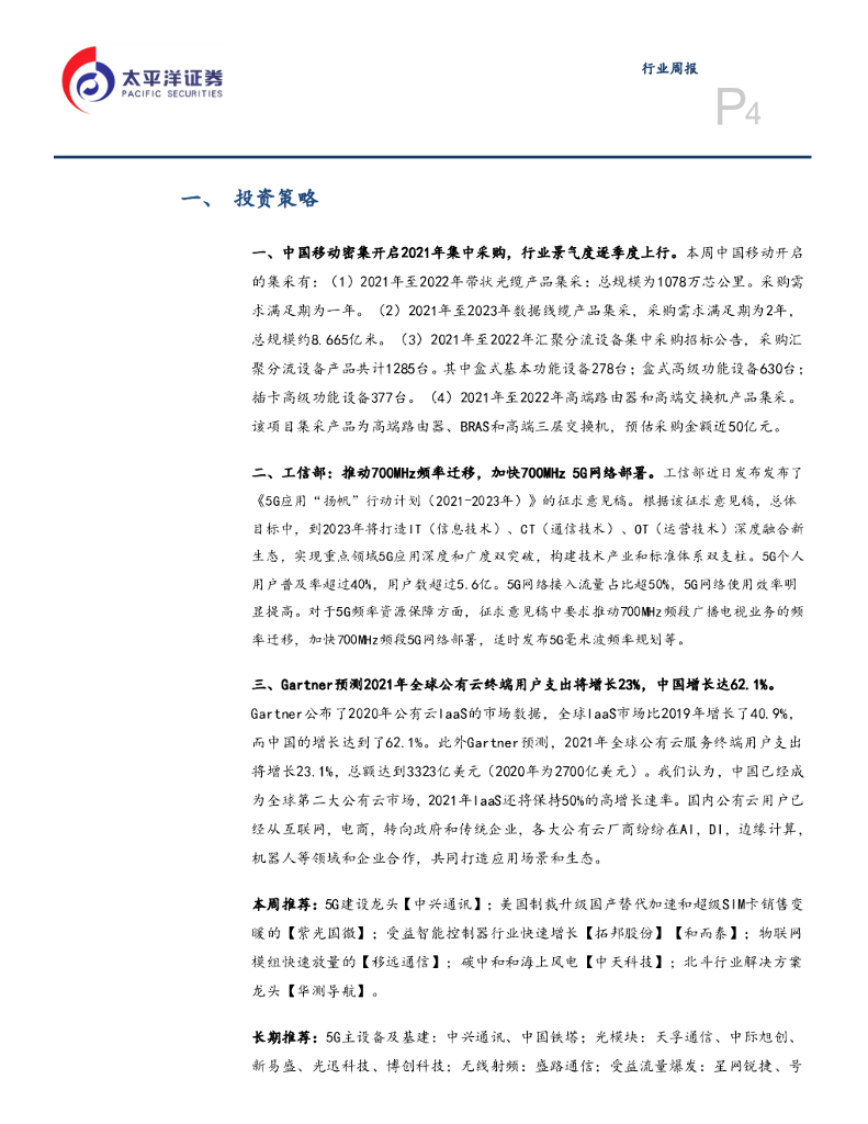 太平洋证券:通信行业周报:中国移动密集开启2021年集采,行业景气度逐季上行.pdf