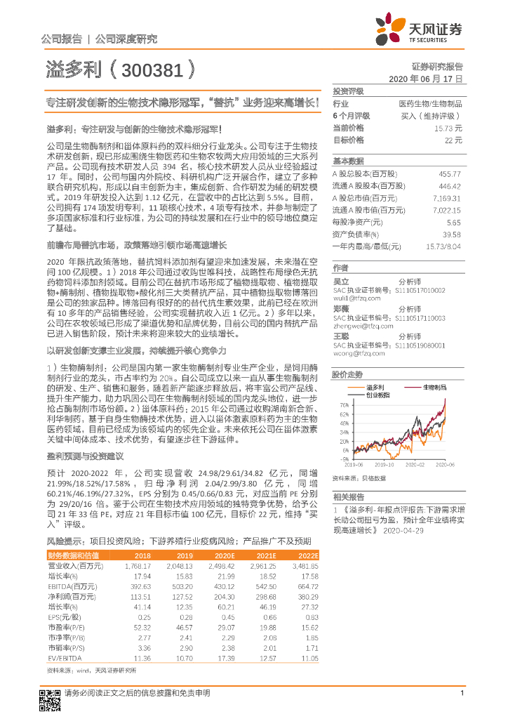 天风证券:溢多利(300381)-专注研发创新的生物技术隐形冠军,“替抗”业务迎来高增长!.pdf