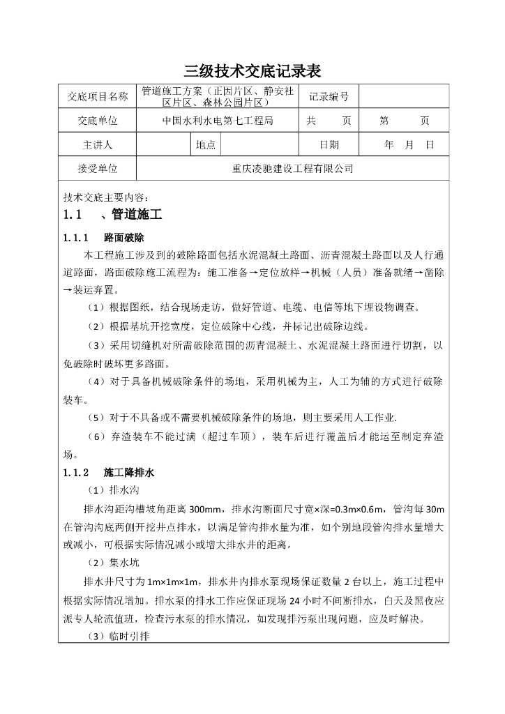 排水管道三级技术交底记录表.doc