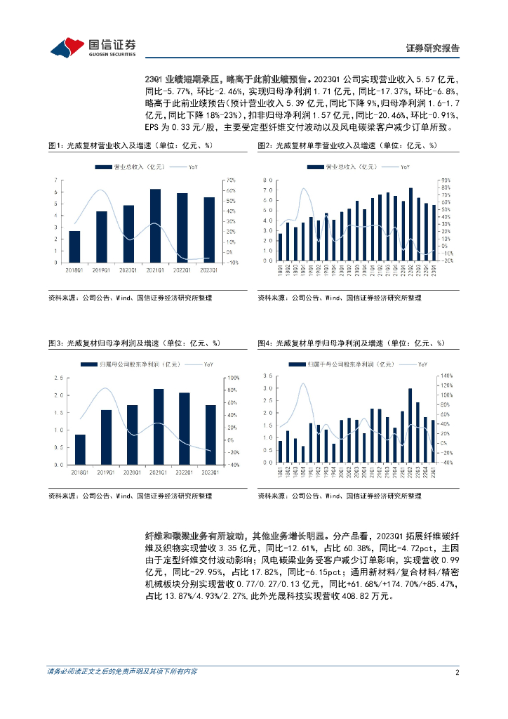 国信证券:光威复材(300699)-2023年一季报点评:业绩短期有所承压,长期趋势向好.pdf