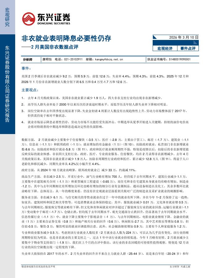 东兴证券:2月美国非农数据点评:非农就业表明降息必要性仍存-260311.pdf