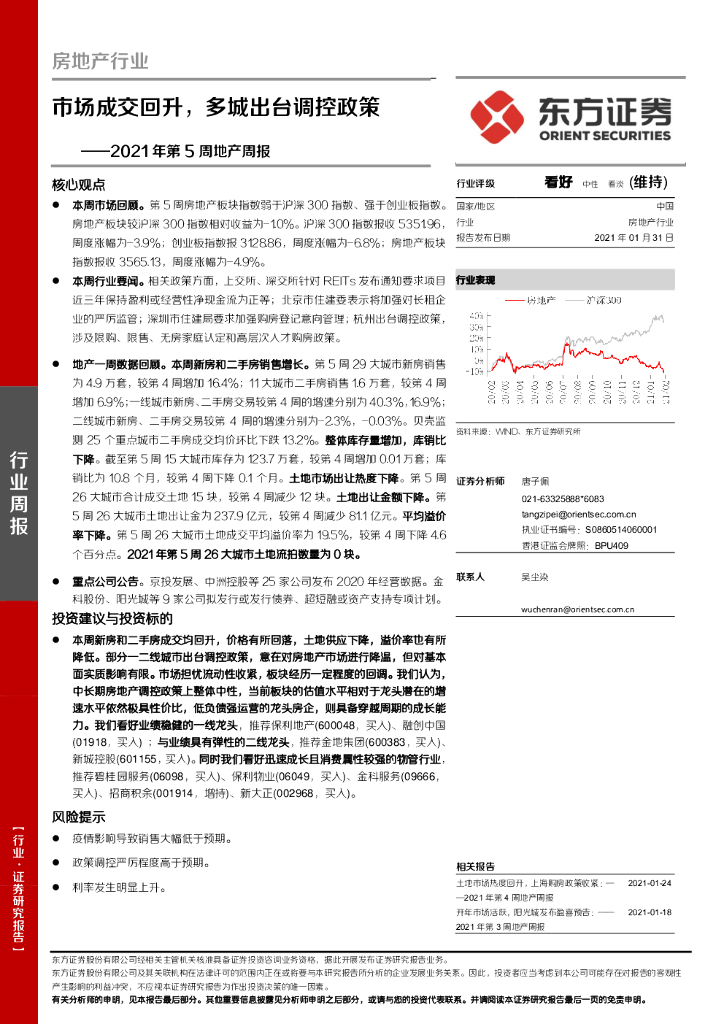 东方证券:房地产行业2021年第5周地产周报:市场成交回升,多城出台调控政策.pdf