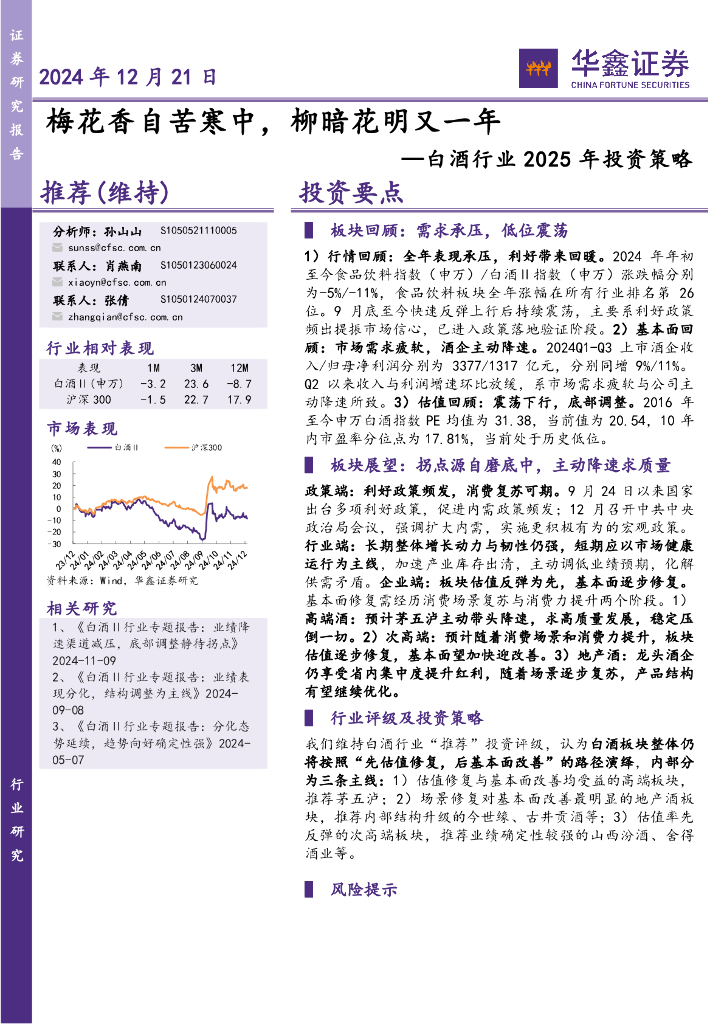 华鑫证券:白酒行业2025年投资策略:梅花香自苦寒中,柳暗花明又一年.pdf