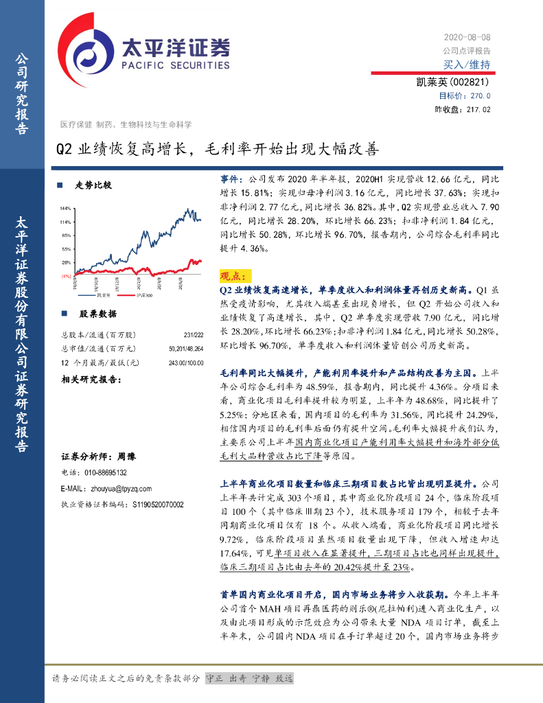 太平洋证券:凯莱英(002821)-Q2业绩恢复高增长,毛利率开始出现大幅改善.pdf