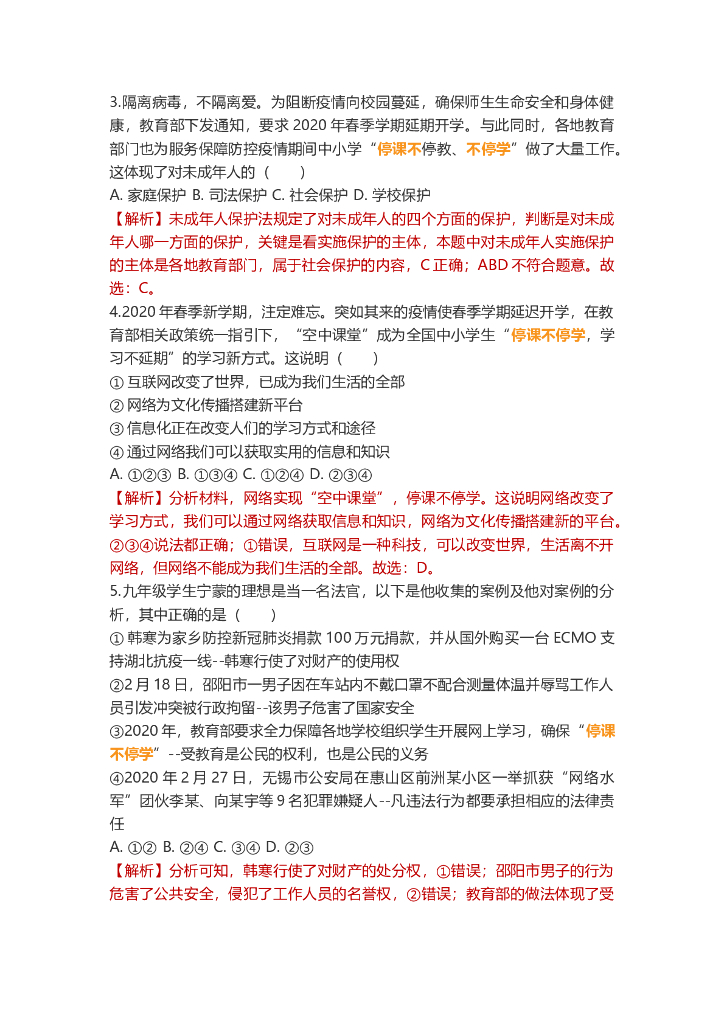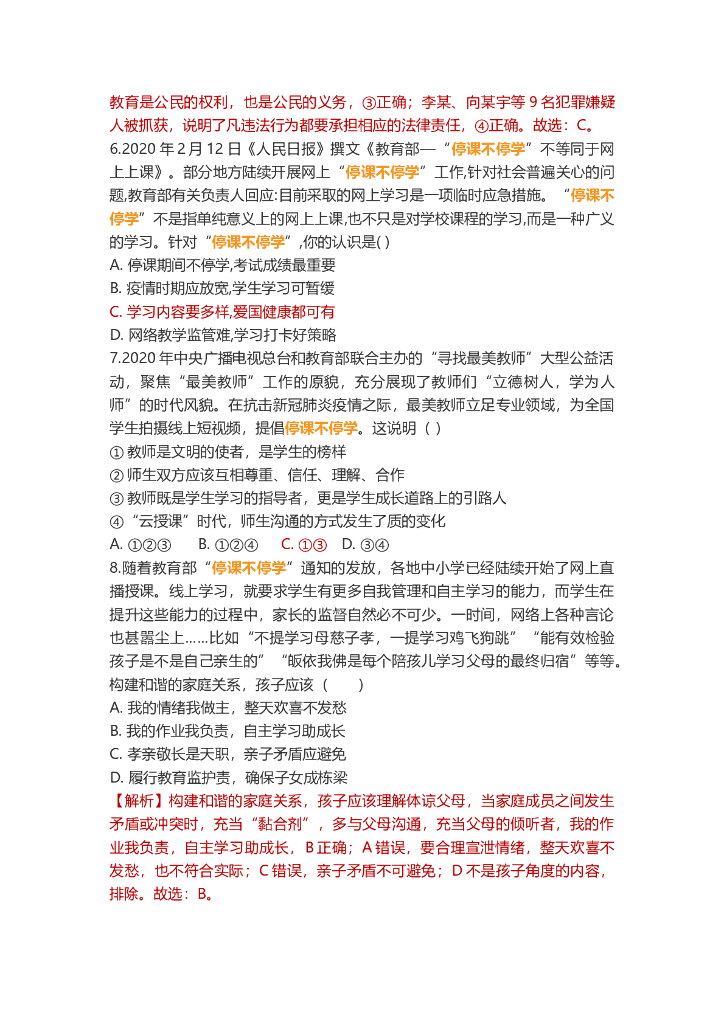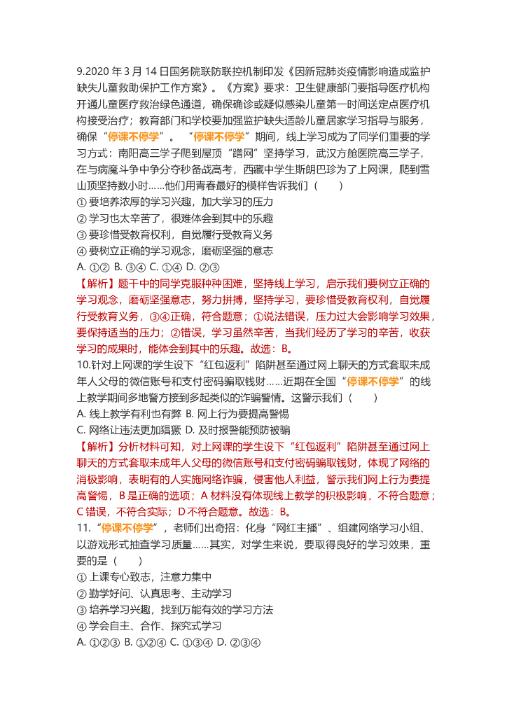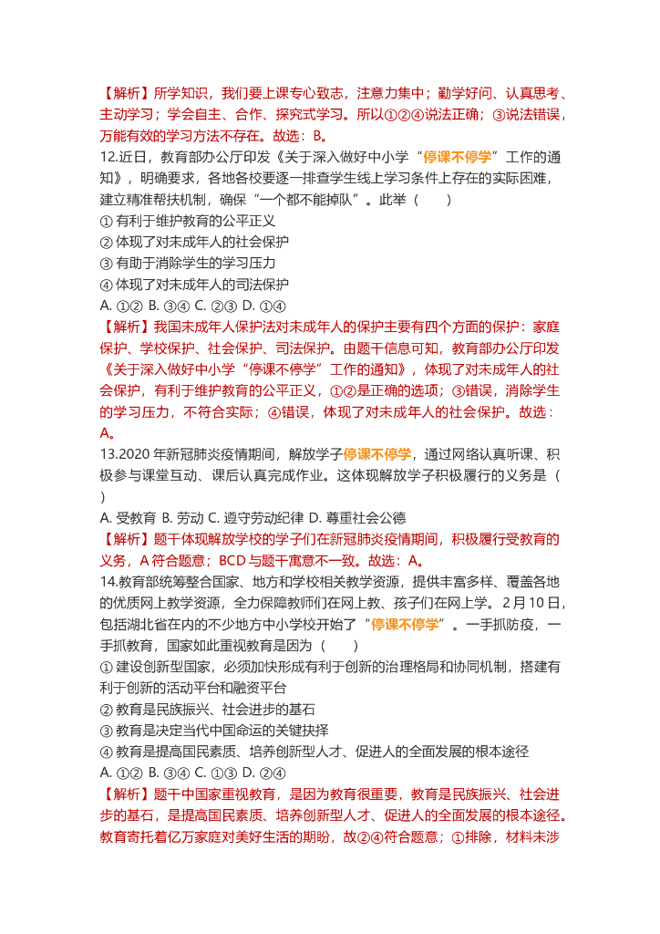 道德与法治中考重点词练习:停课不停学.doc