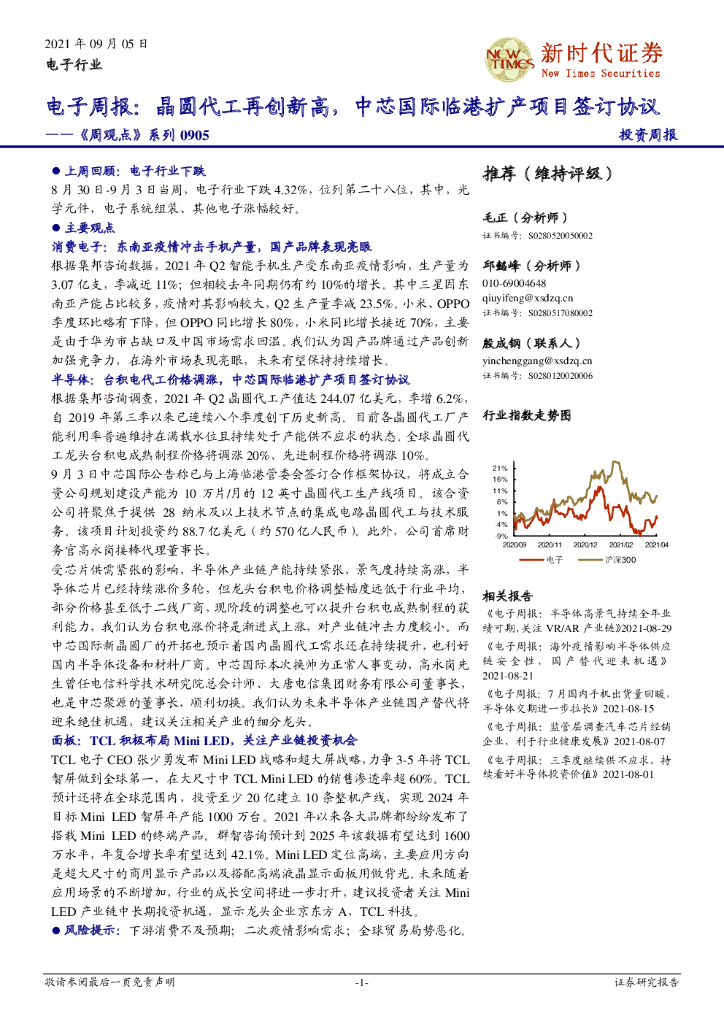 新时代证券:电子周报:晶圆代工再创新高,中芯国际临港扩产项目签订协议.pdf