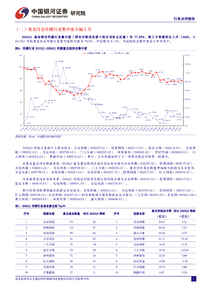 中国银河:2024Q1传媒行业基金持仓分析:配置比例回升,影视、出版配置金额提升.pdf