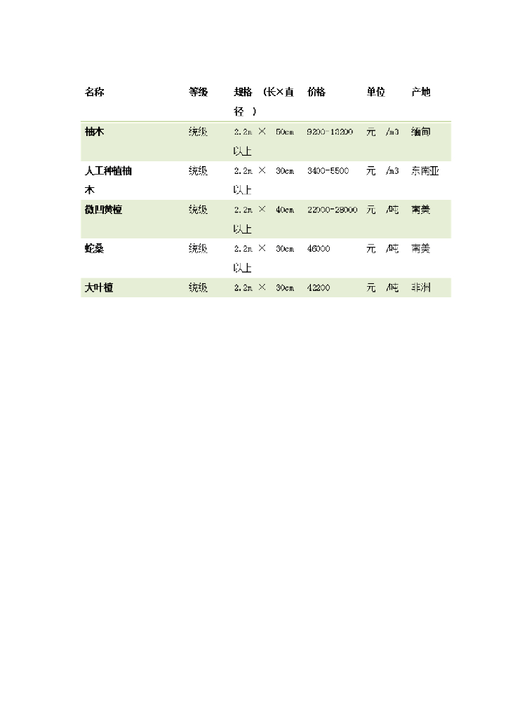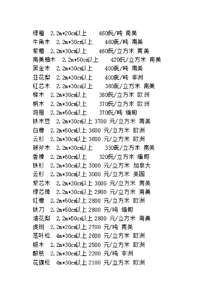 中国木材价格表.doc