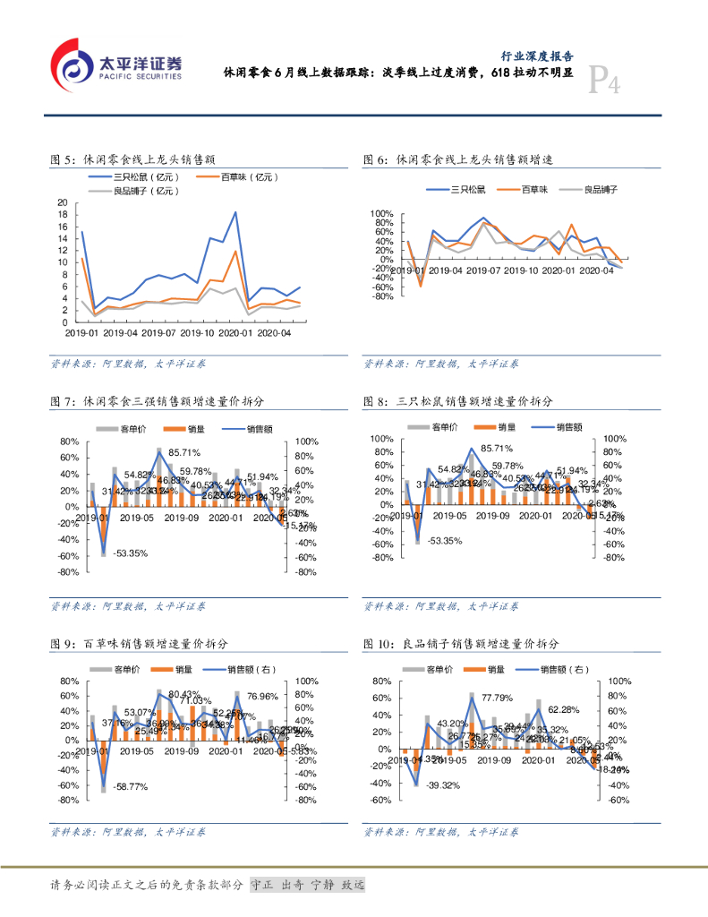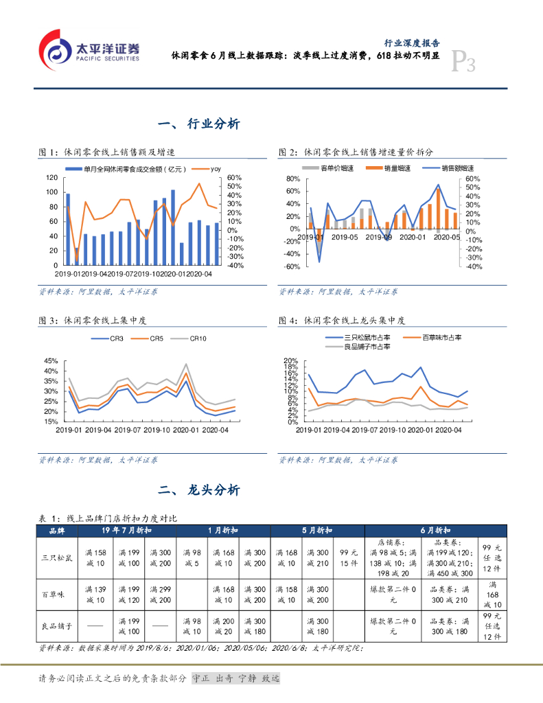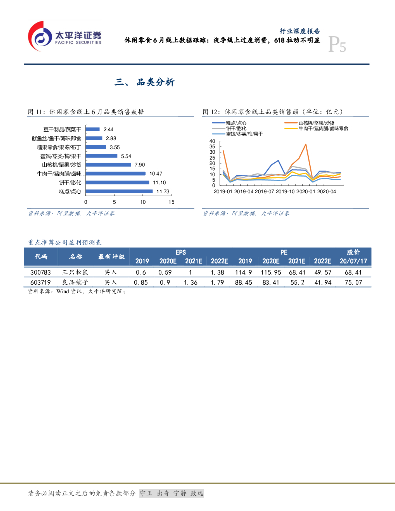 太平洋证券:食品、饮料与烟草行业深度报告:休闲零食6月线上数据跟踪:淡季线上过度消费,618拉动不明显.pdf