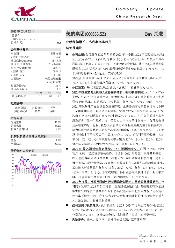 群益证券:美的集团(000333)-业绩稳健增长,毛利率逐季回升.pdf