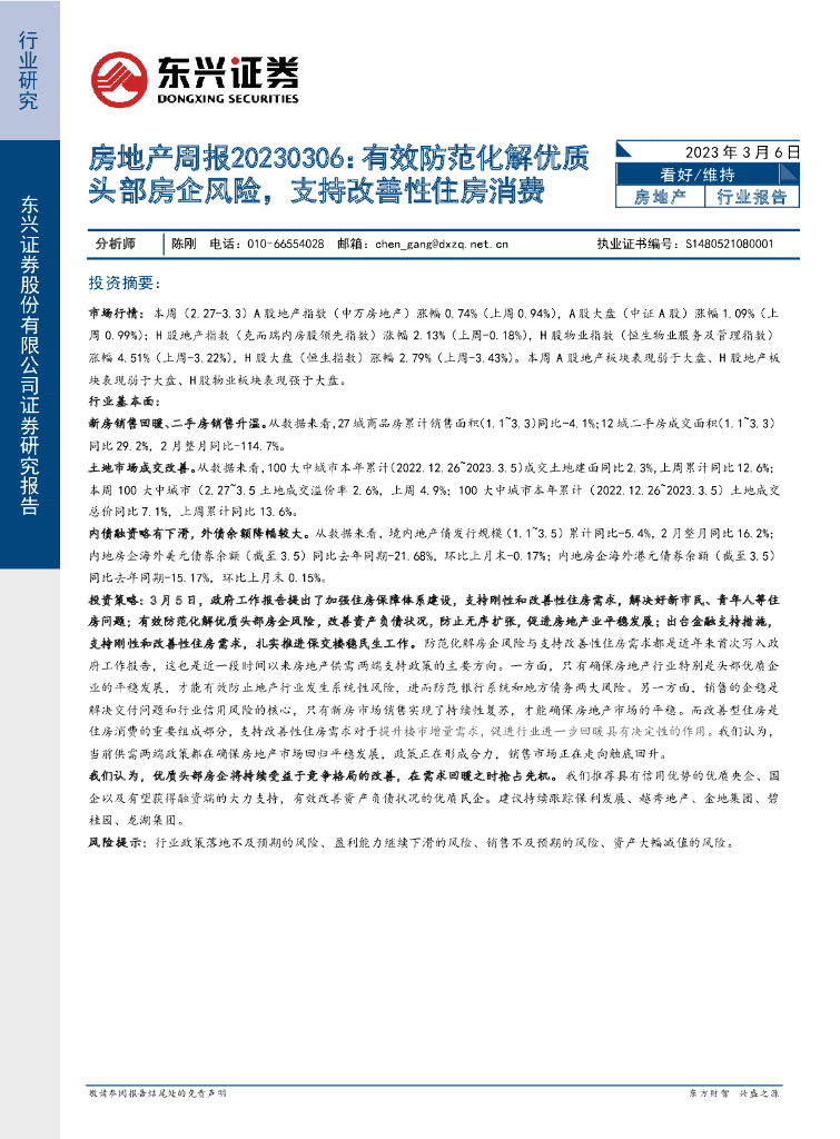 东兴证券:房地产周报:有效防范化解优质头部房企风险,支持改善性住房消费.pdf