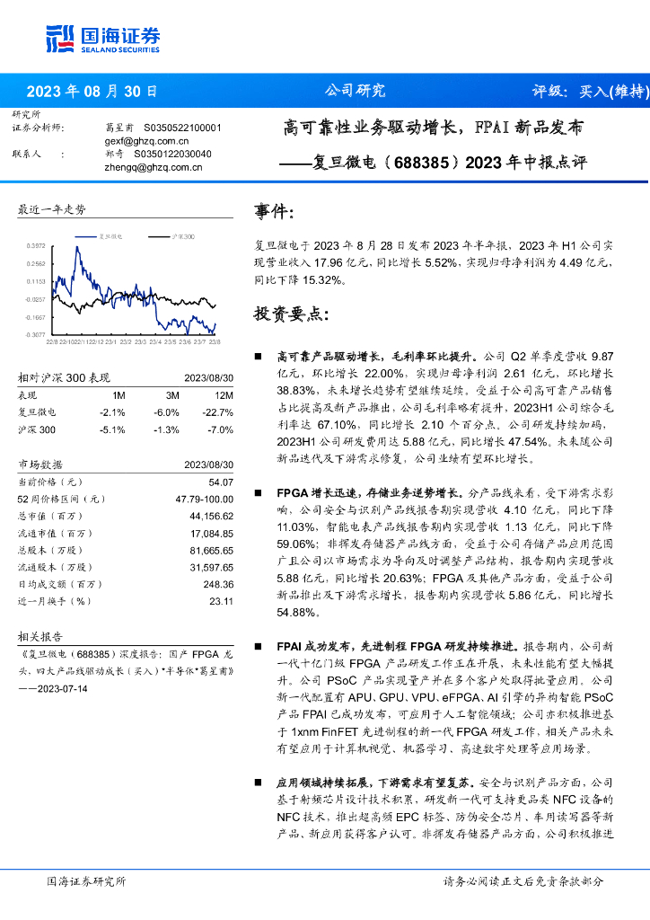 国海证券:复旦微电(688385)-2023年中报点评:高可靠性业务驱动增长,FPAI新品发布.pdf