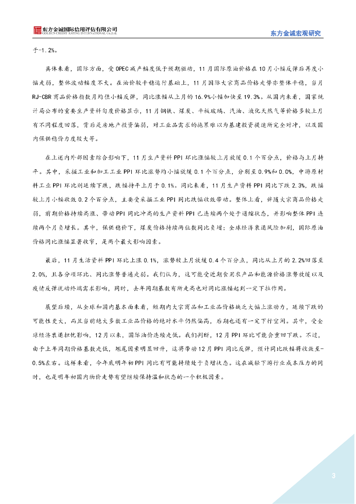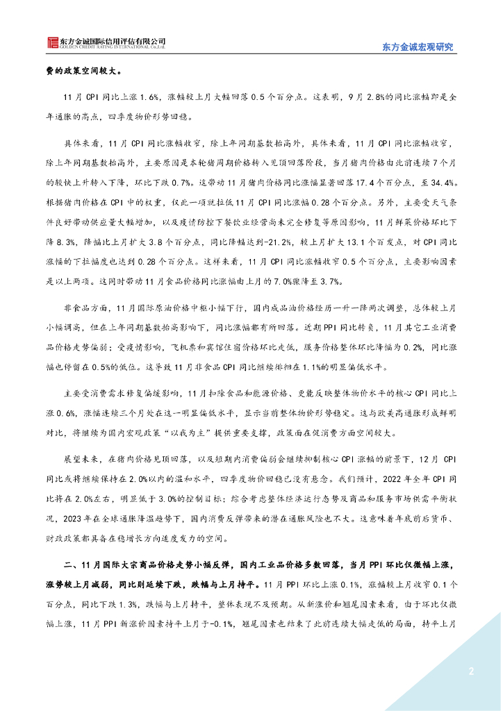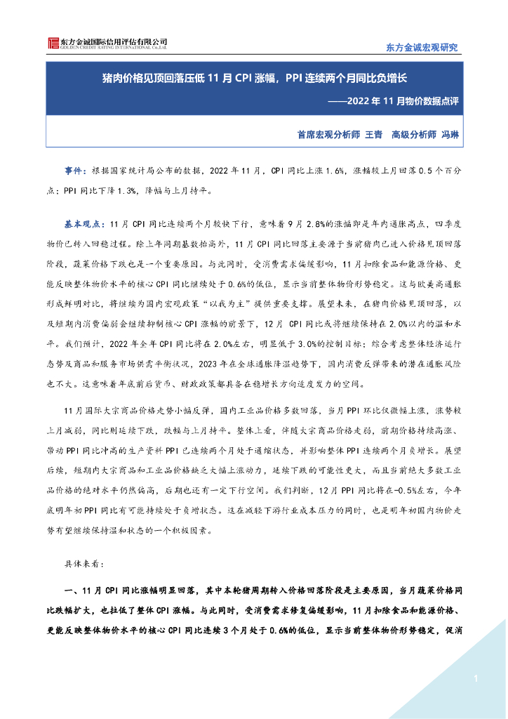 东方金诚: 猪肉价格见顶回落压低11月CPI涨幅,PPI连续两个月同比负增长(2022年11月物价点评).pdf