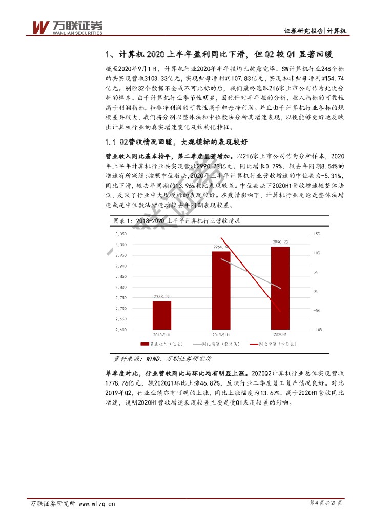 万联证券:计算机行业2020半年报综述:Q2业绩显著回暖,费用率稳中有降.pdf