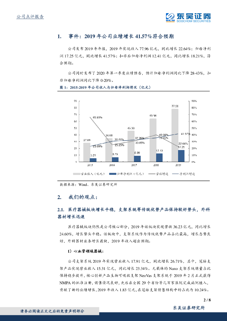 东吴证券:乐普医疗(300003)-2019年业绩符合预期,传统优势产品增长稳定,研发管线丰富带来良好增长预期.pdf