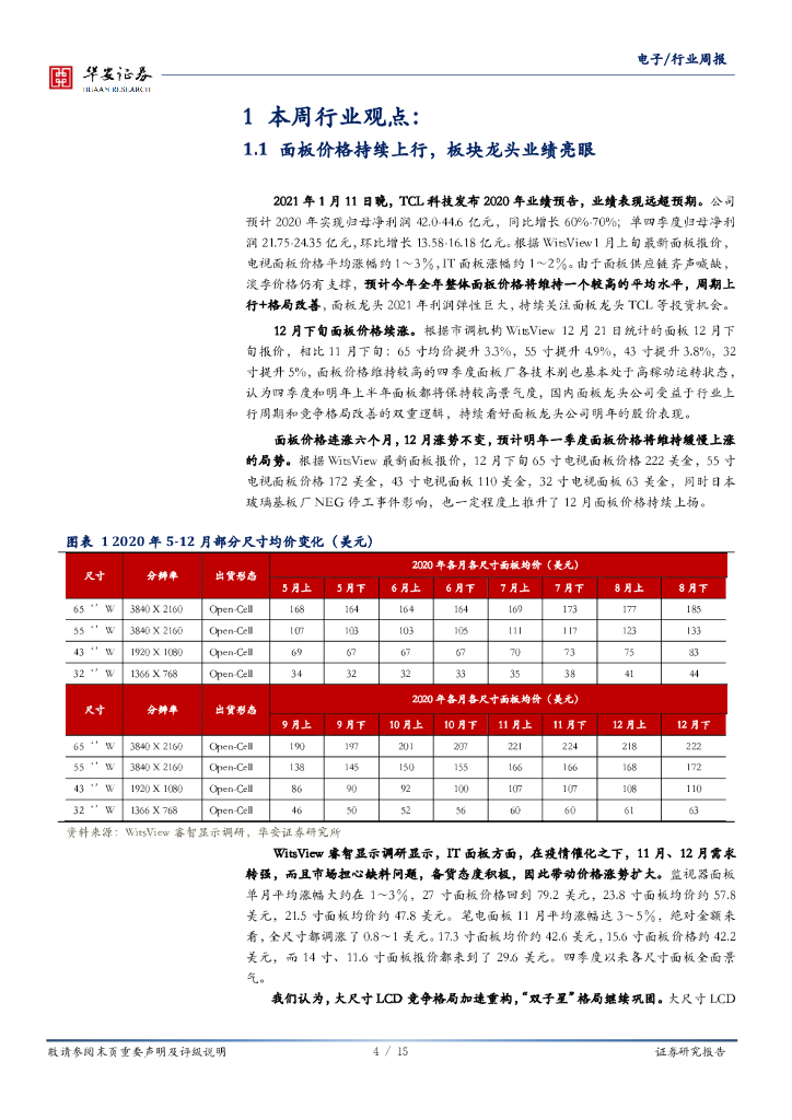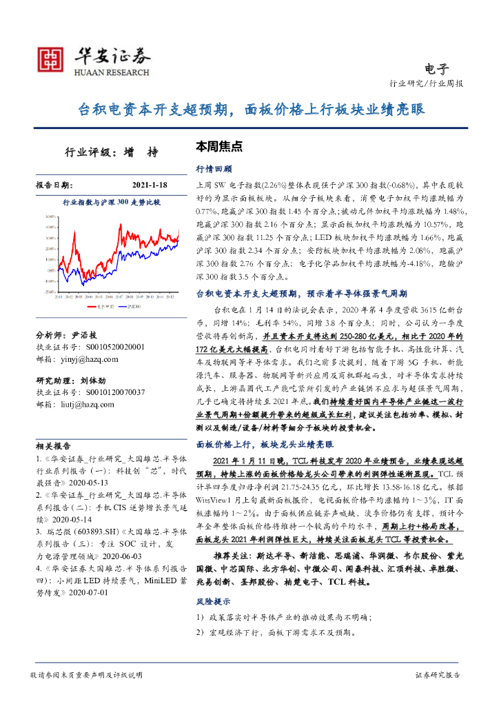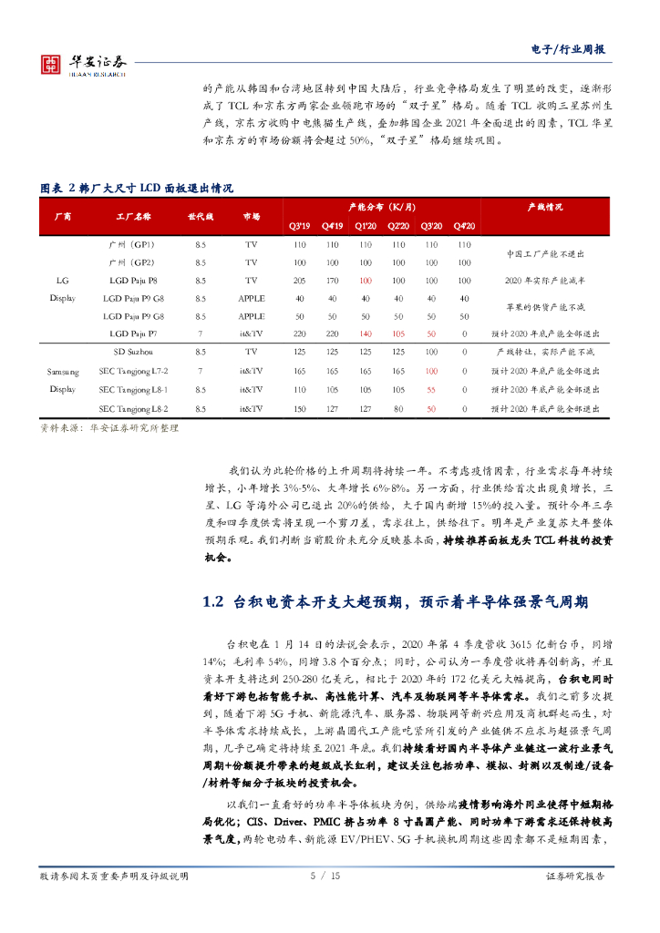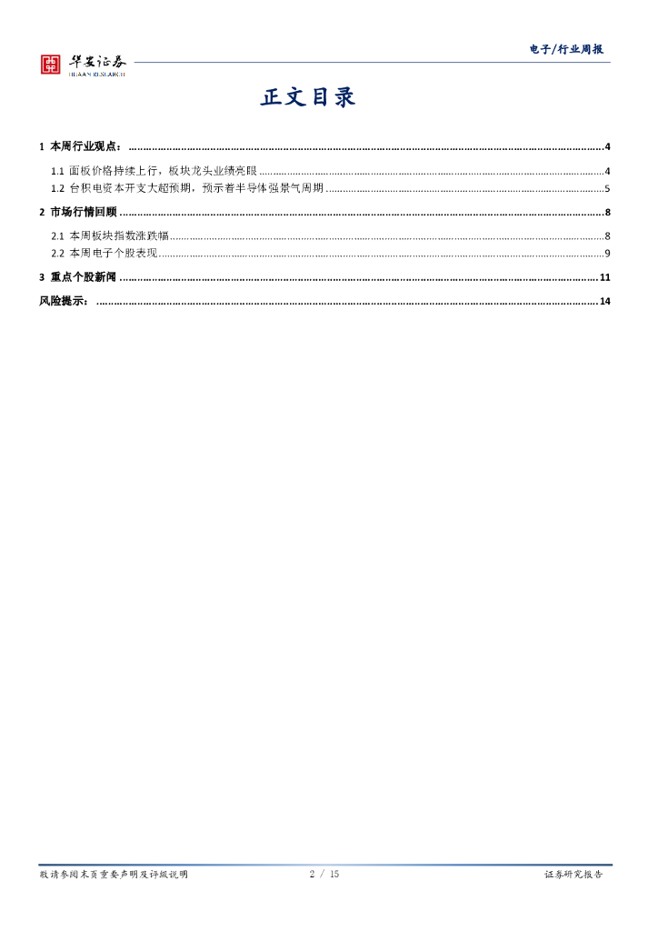 华安证券:电子行业周报:台积电资本开支超预期,面板价格上行板块业绩亮眼.pdf