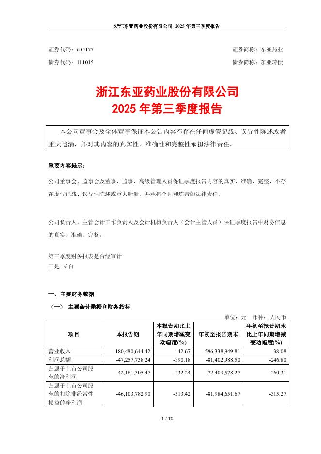 111015-东亚药业:东亚药业2025年第三季度报告.pdf
