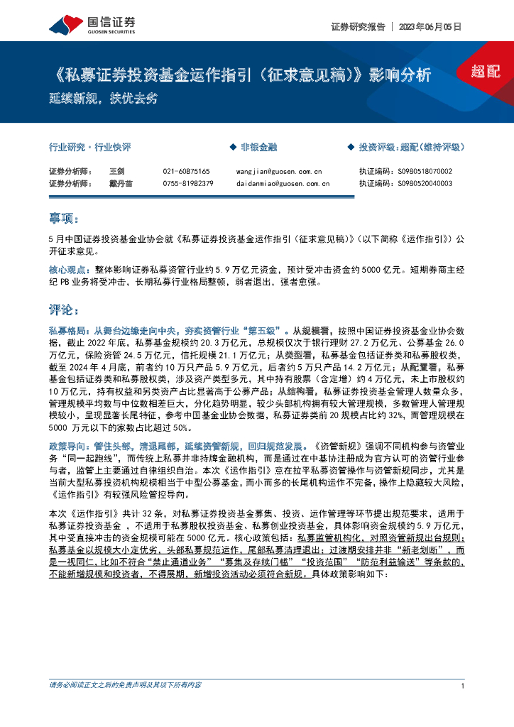 国信证券:非银金融:《私募证券投资基金运作指引(征求意见稿)》影响分析-延续新规,扶优去劣.pdf