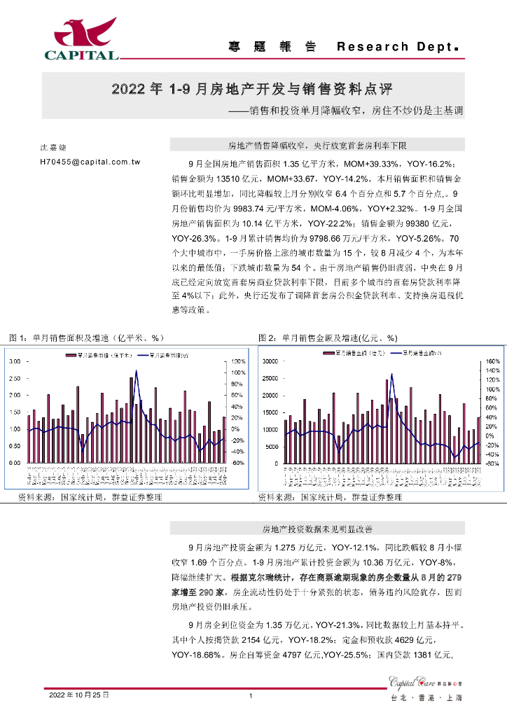 群益证券:2022年1-9月房地产开发与销售资料点评:销售和投资单月降幅收窄,房住不炒仍是主基调.pdf