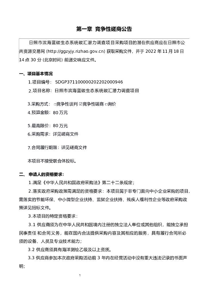 日照市滨海蓝碳生态系统碳汇潜力调查项目.doc