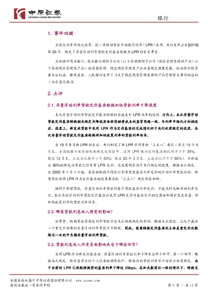 中原证券:银行行业点评报告:LPR应用范围扩大,行业所受影响有限.pdf