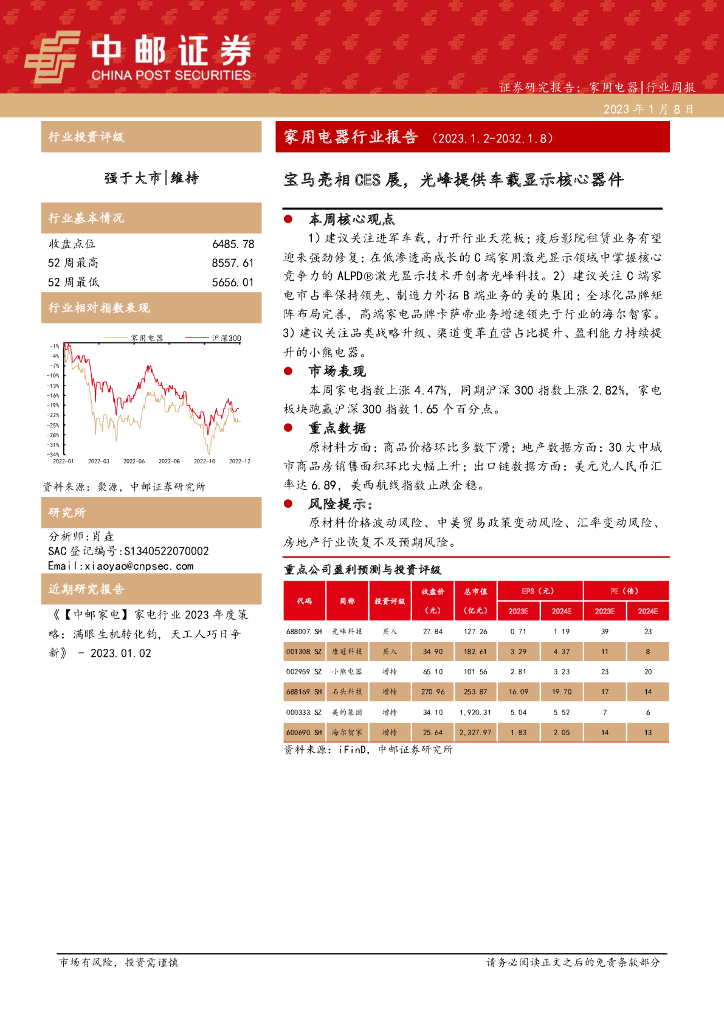 中邮证券:家用电器行业报告:宝马亮相CES展,光峰提供车载显示核心器件.pdf