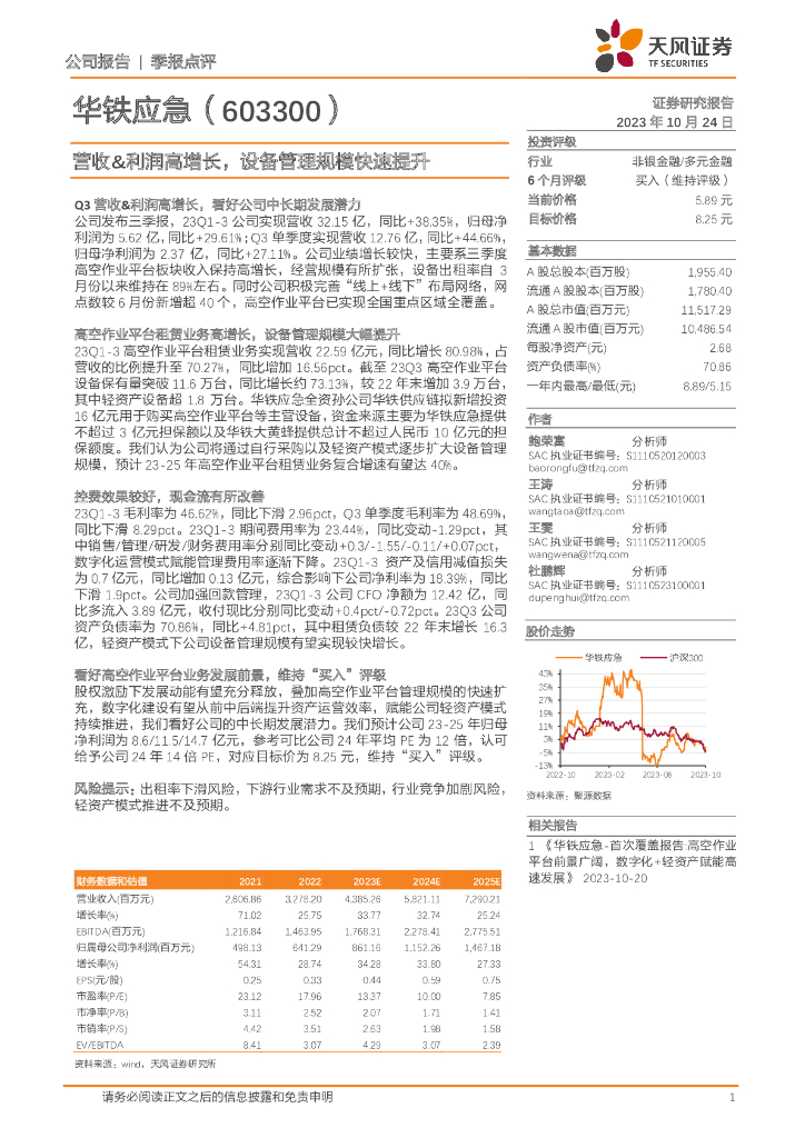 天风证券:华铁应急(603300)-营收&利润高增长,设备管理规模快速提升.pdf