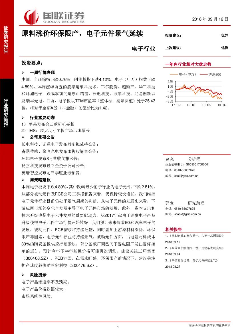 国联证券:电子行业:原料涨价环保限产,电子元件景气延续.pdf