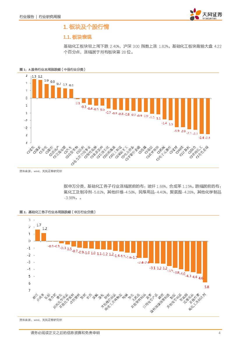 天风证券:化工行业研究周报:粘胶短纤止跌企稳,橡胶价格继续下跌.pdf