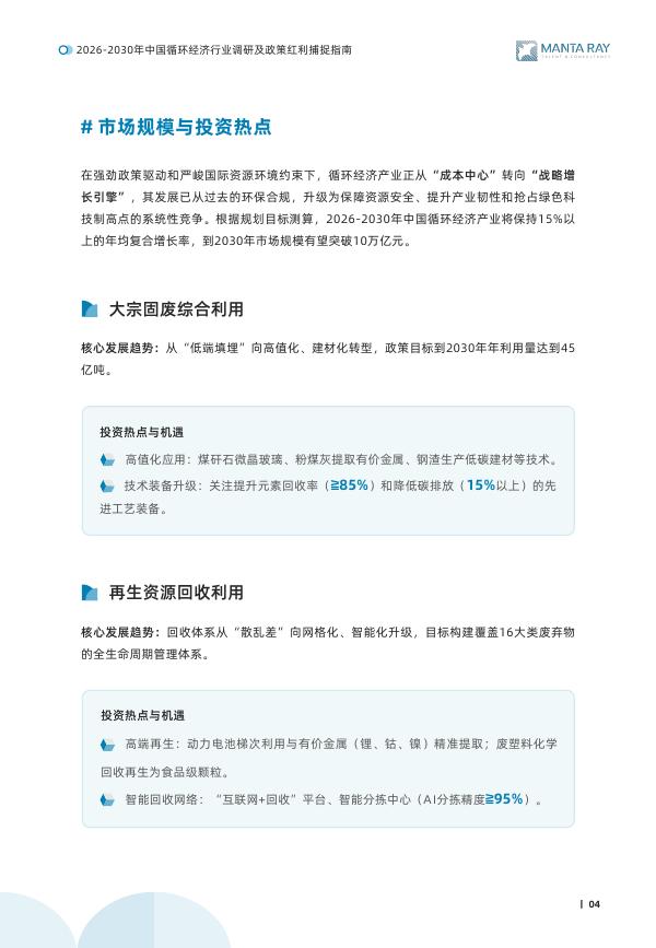 MANTA RAY:2026-2030年曼塔瑞MantaRay中国循环经济行业调研及政策红利捕捉指南报告.pdf