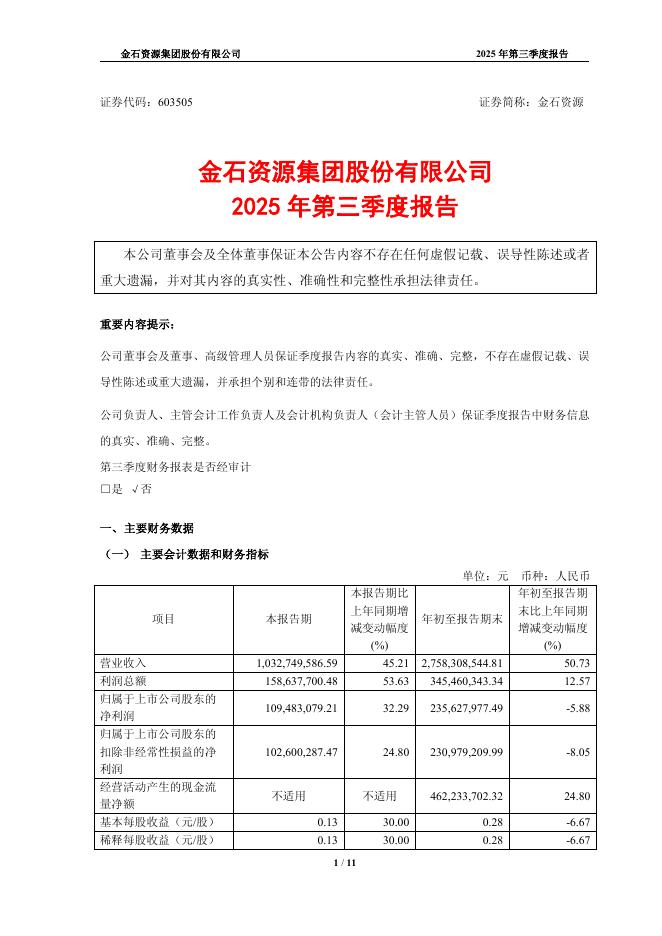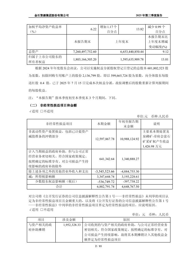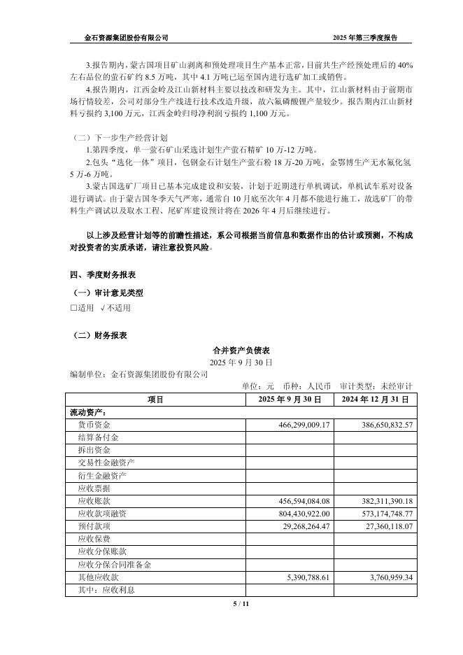 603505-金石资源:金石资源集团股份有限公司2025年第三季度报告.pdf
