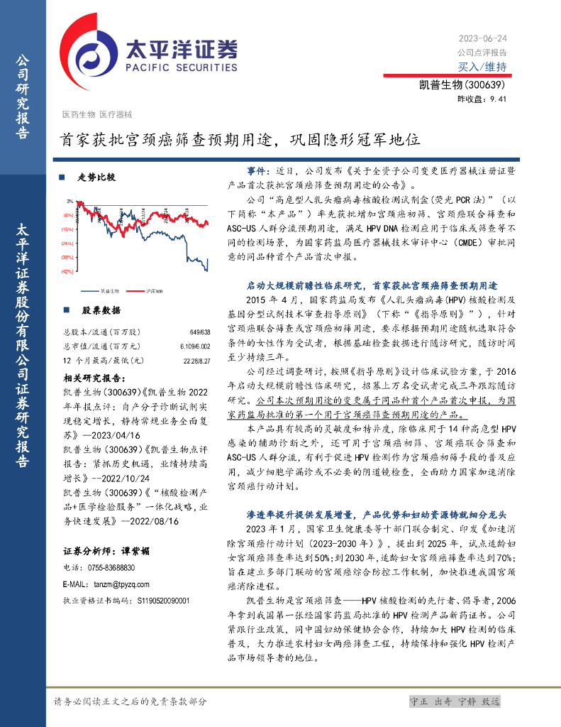 太平洋证券:凯普生物(300639)-首家获批宫颈癌筛查预期用途,巩固隐形冠军地位.pdf