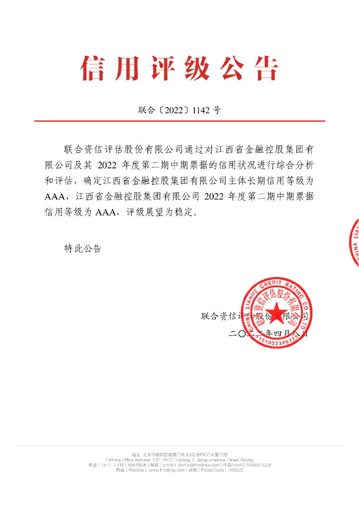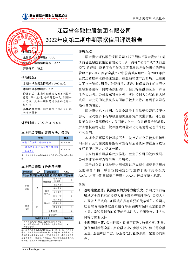 联合资信:江西省金融控股集团有限公司2022年度第二期中期票据信用评级报告及跟踪评级安排.pdf