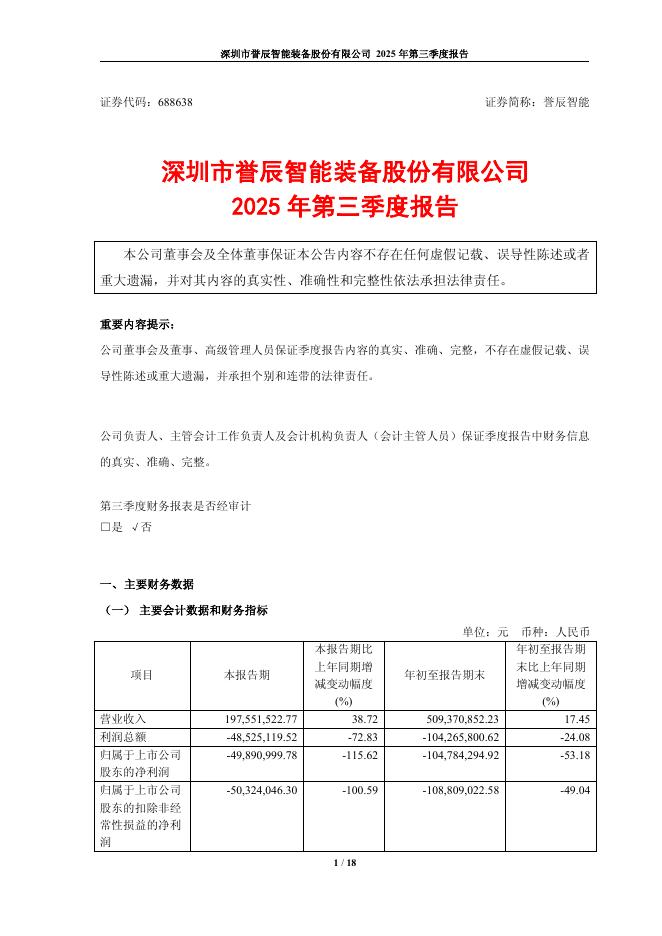 688638-誉辰智能:深圳市誉辰智能装备股份有限公司2025年第三季度报告.pdf