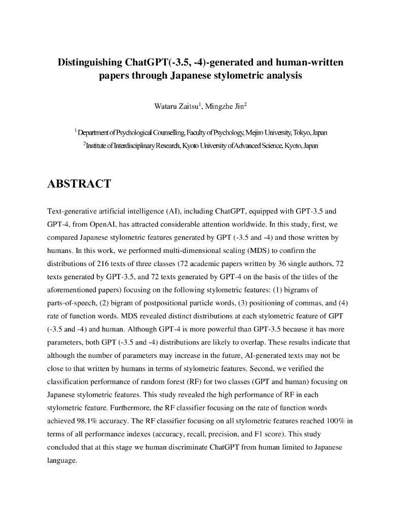 通过日语风格测量分辨 ChatGPT (-3.5, -4) 生成与人工写作的论文(英文版).pdf