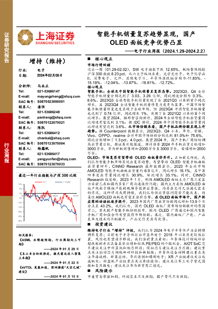 上海证券:电子行业周报:智能手机销量复苏趋势显现,国产OLED面板竞争优势凸显.pdf