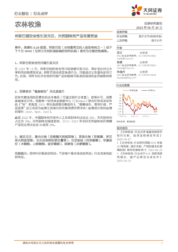 天风证券:农林牧渔:阿斯巴甜安全性引发关注,天然甜味剂产品有望受益.pdf