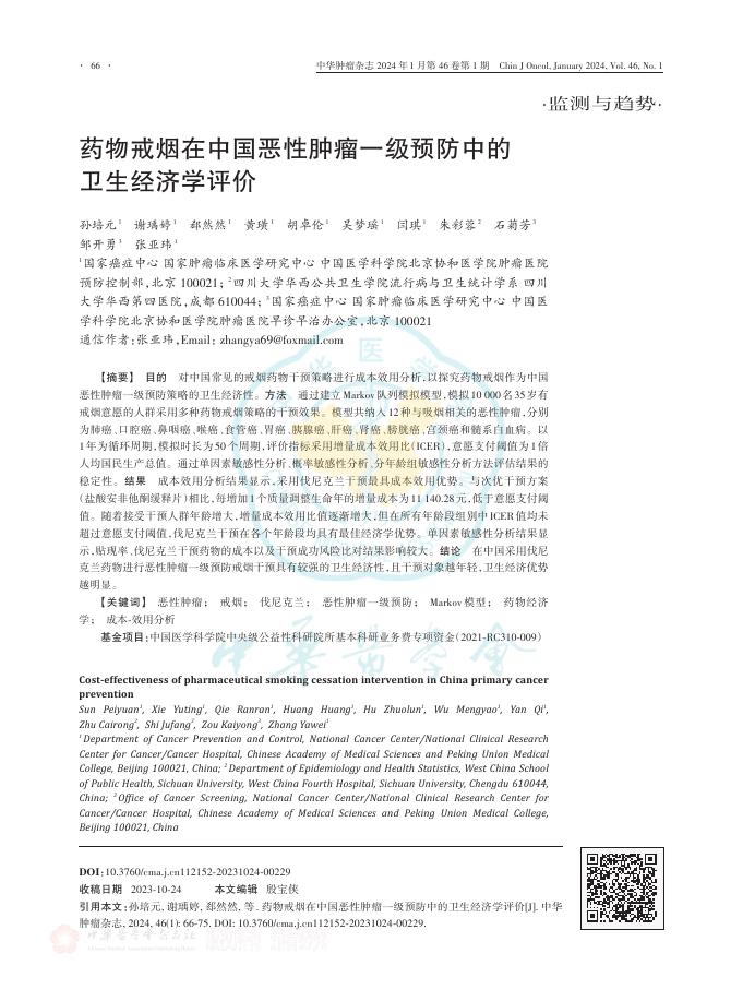 药物戒烟在中国恶性肿瘤一级预防中的卫生经济学评价.pdf