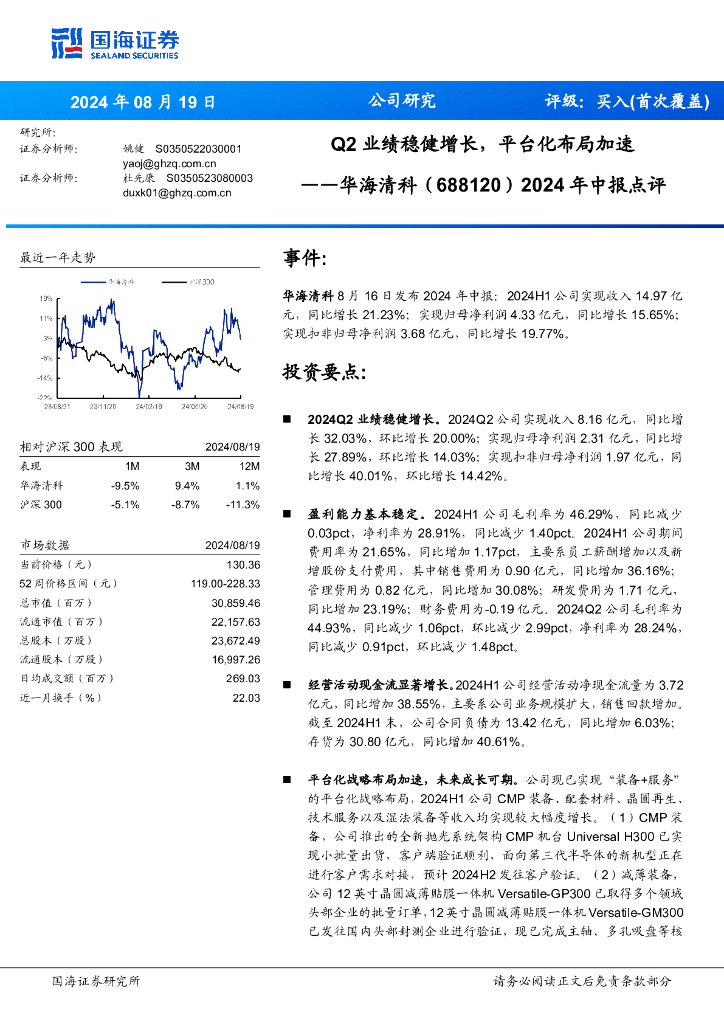 国海证券:华海清科(688120)-2024年中报点评:Q2业绩稳健增长,平台化布局加速.pdf