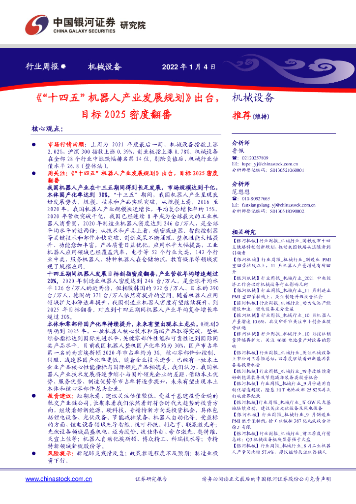 中国银河:机械设备行业周报:《“十四五”机器人产业发展规划》出台,目标2025密度翻番.pdf