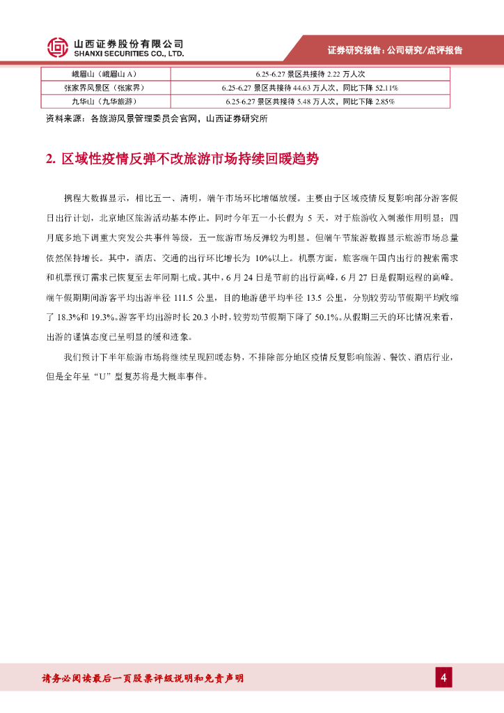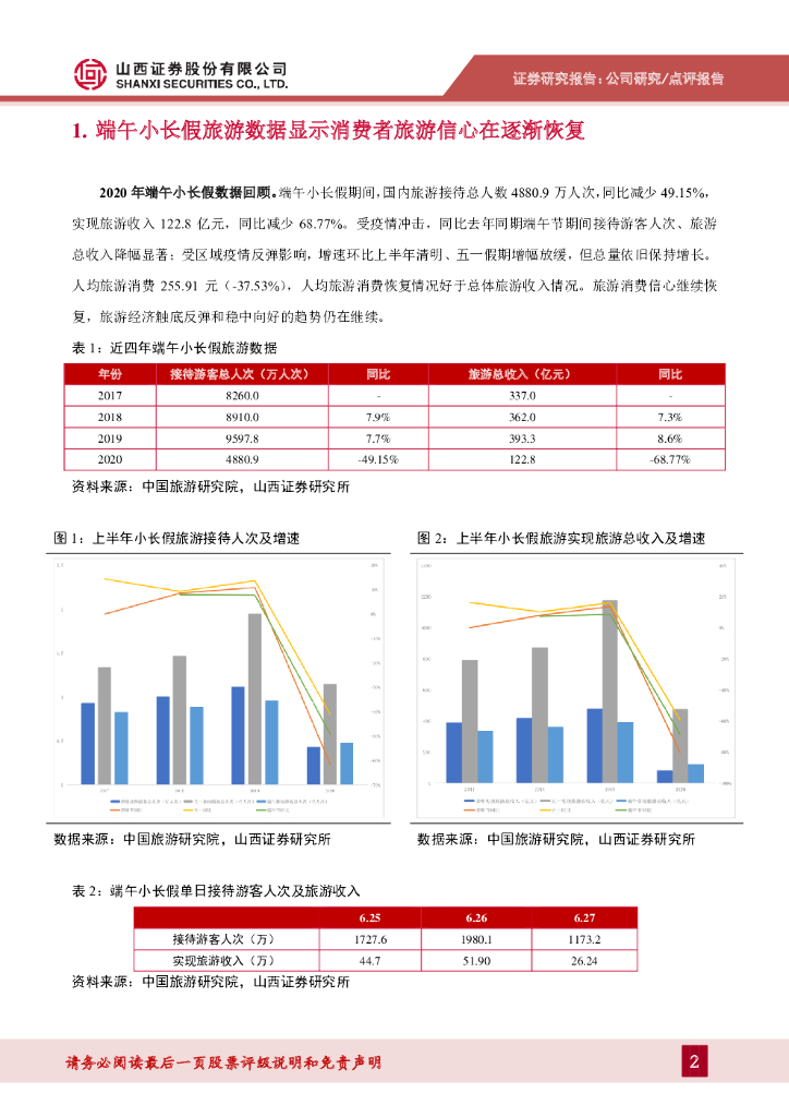 山西证券:2020年端午小长假旅游数据点评:环比五一清明、端午市场增幅放缓,但总量依然保持增长.pdf