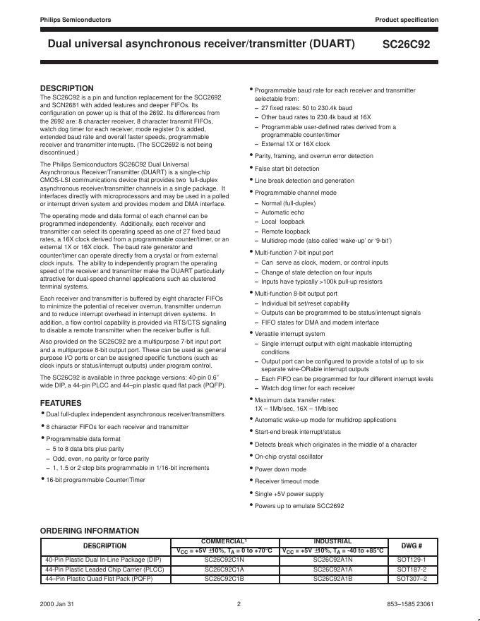 飞利浦 SC26C92 Dual universal asynchronous receiver/transmitter (DUART) 数据手册.pdf