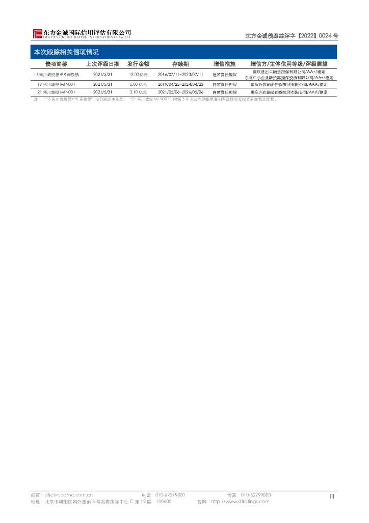 东方金诚:重庆市南川区城市建设投资(集团)有限公司主体及“16南川城投债PR南投债”和“19南川城投MTN001”和“21南川城投MTN001”2022年度跟踪评级报告.pdf