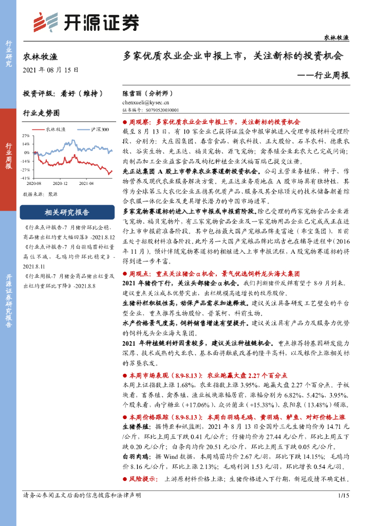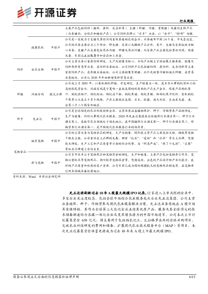 开源证券:农林牧渔行业周报:多家优质农业企业申报上市,关注新标的投资机会.pdf