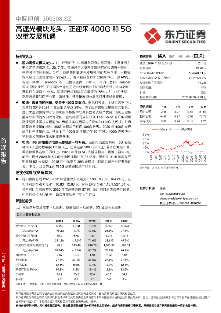 东方证券:中际旭创(300308)-高速光模块龙头,正迎来400G和5G双重发展机遇.pdf