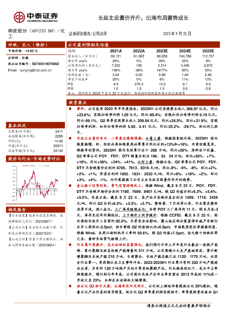 中泰证券:桐昆股份(601233)-长丝主业量价齐升,出海布局蓄势成长.pdf