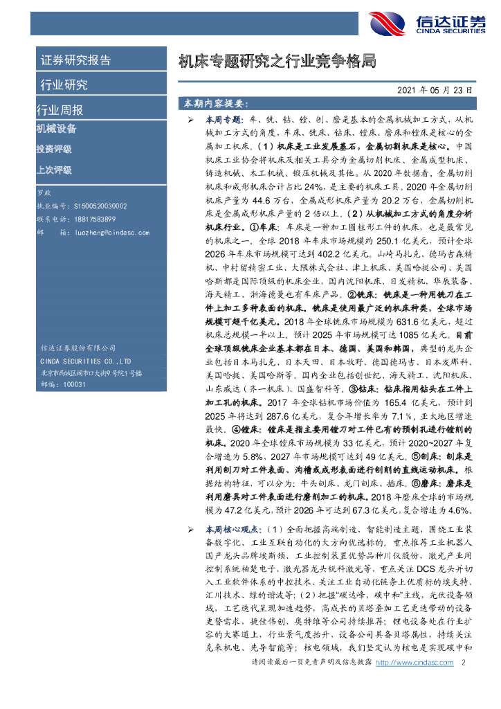 信达证券:机械设备周报:机床专题研究之行业竞争格局.pdf